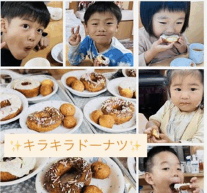 お誕生日会の日のおやつはキラキラドーナツでした。
